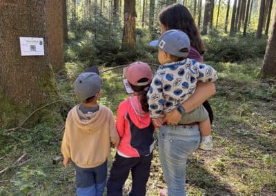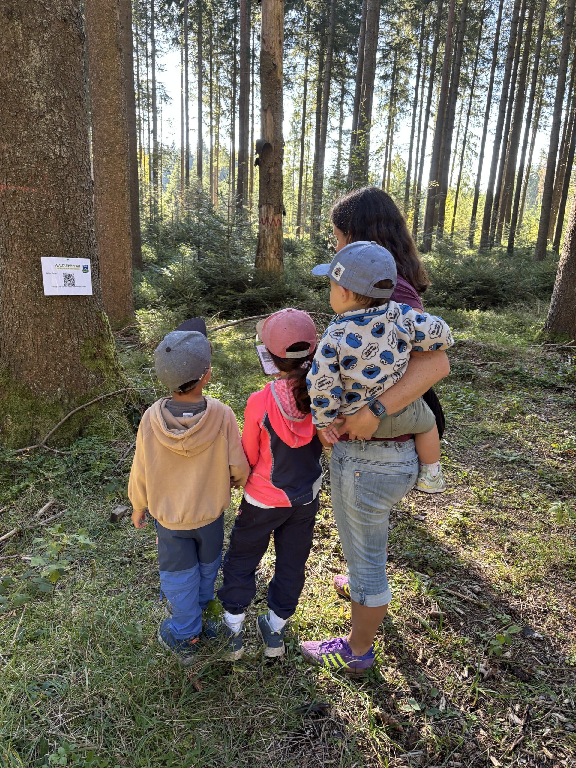 Familien konnten am 20. September den Mönchweiler Wald mit der App Actionbound interaktiv erkunden. Hierbei wurden an jeder Station Fragen zu den Tieren des Waldes gestellt und es gab eine Aufgabe welche ohne Smartphone gemacht werden konnte. Vier Waldtieren begleiteten die BesucherInnen durch den Pfad und berichteten Ihnen allerhand über ihre Fähigkeiten, ihre Sinne und den Wald. Die Teilnehmenden erwarben neues Wissen über Fuchs, Waldameise, Specht und Eichhörnchen und erforschten den Wald bei Spielen und Wahrnehmungsübungen mit allen Sinnen.