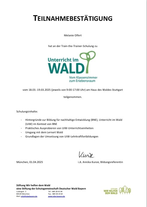 Bei bestem Herbstwetter macht das Lernen im Wald gleich doppelt soviel Spaß! Bei der Fortbildung "Unterricht im Wald" für Lehrkräfte der Klassenstufen 1-4, konnten die LehrerInnen, unter meiner Anleitung, selbst erleben, wie der Lehrplan des Landes Baden-Württemberg...